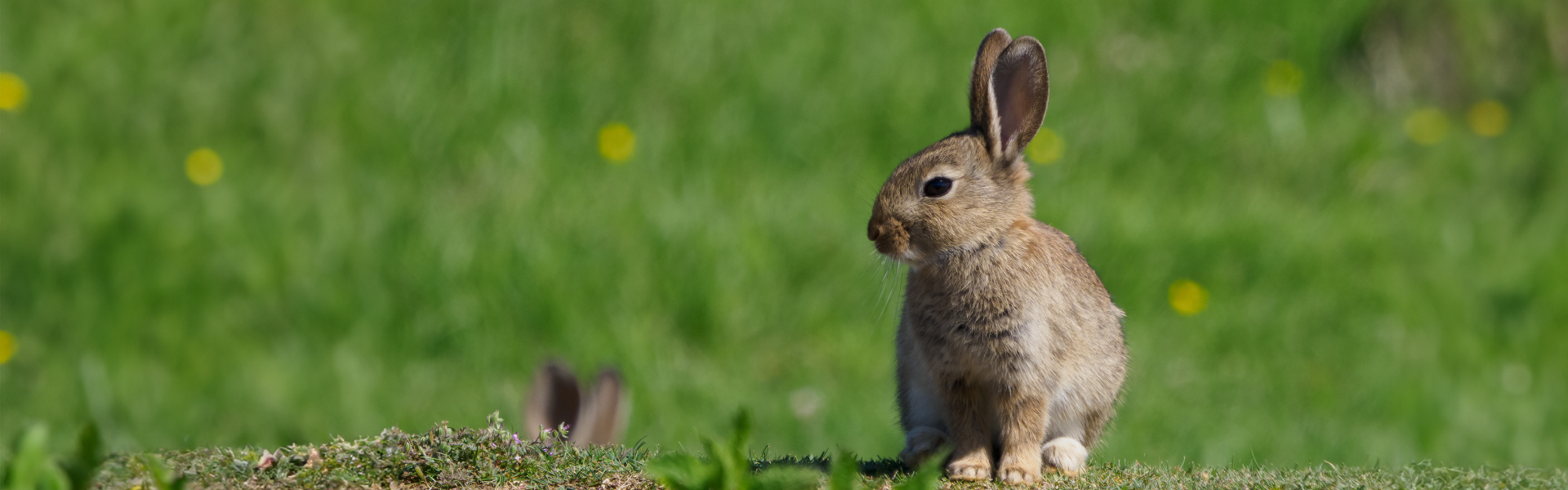 Long hind limbs with small front limbs. Bulging eyes. Ears are large and long, but no longer than the length of the head. Coat is typically grey-brown with a pale underbelly but black, ginger and white coloured rabbits also occur in the wild. Tail is white underneath and held upwards while running. Shelters in burrows.